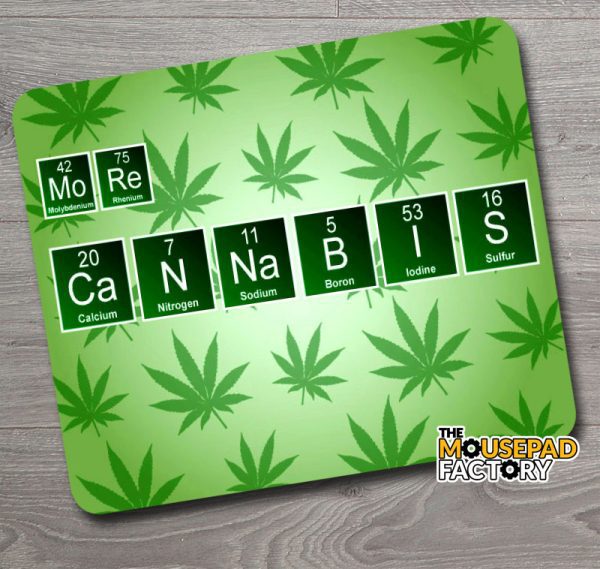 This Mouse Pad features a Cannabis Marijuana funny Chemistry / Periodic Elements design.