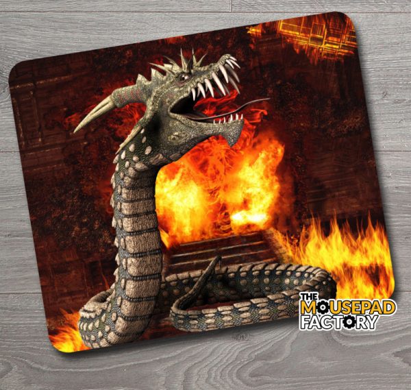 This Mouse Pad features a Fire Dragon in a Dungeon.
