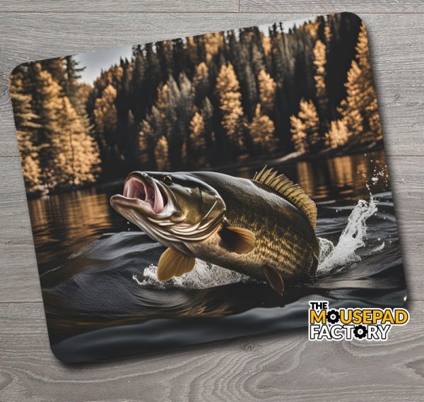 This Mouse Pad features a Smallmouth Bass jumping in a Northern Lake.