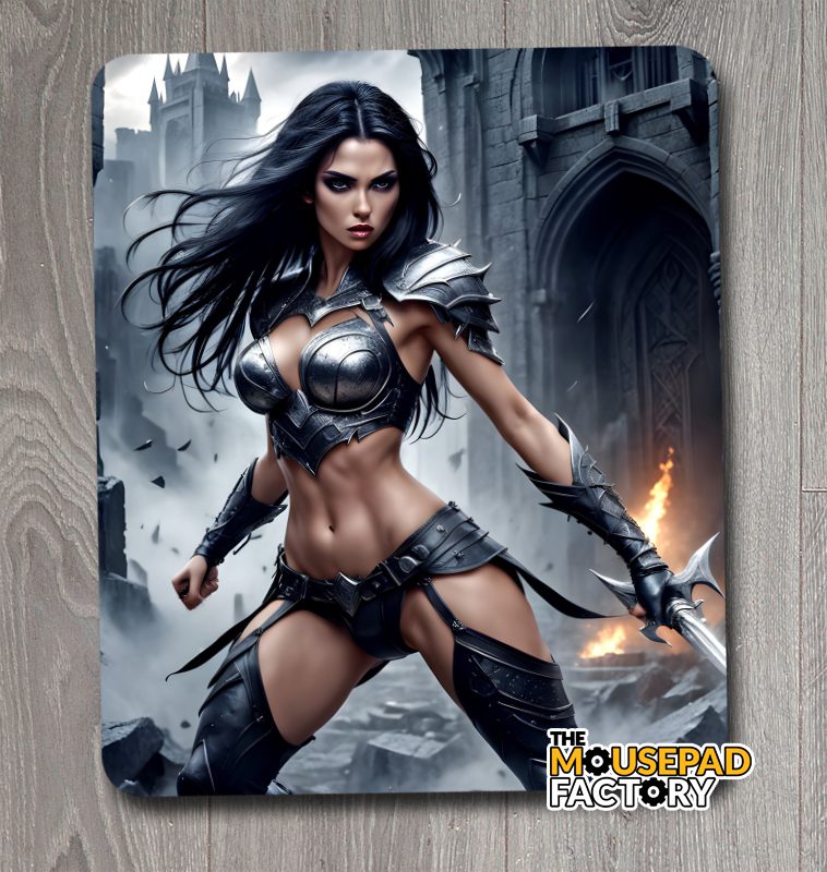 This Mouse Pad features a Sexy Warrior Woman Black Knight.