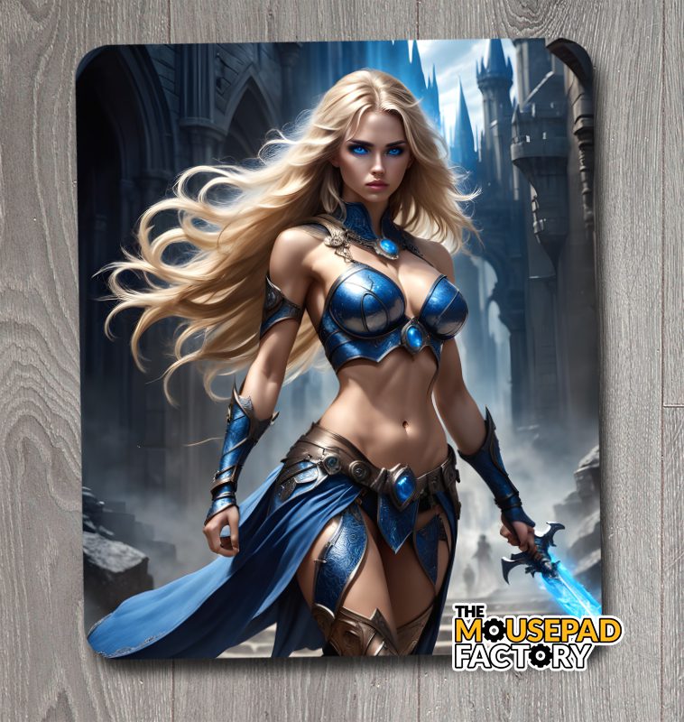 This Mouse Pad features a Sexy Warrior Woman Blonde Knight.