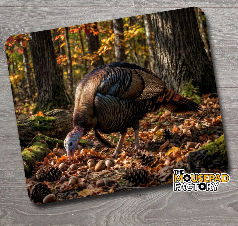 This Mouse Pad features a Wild Turkey foraging for food in the woods.